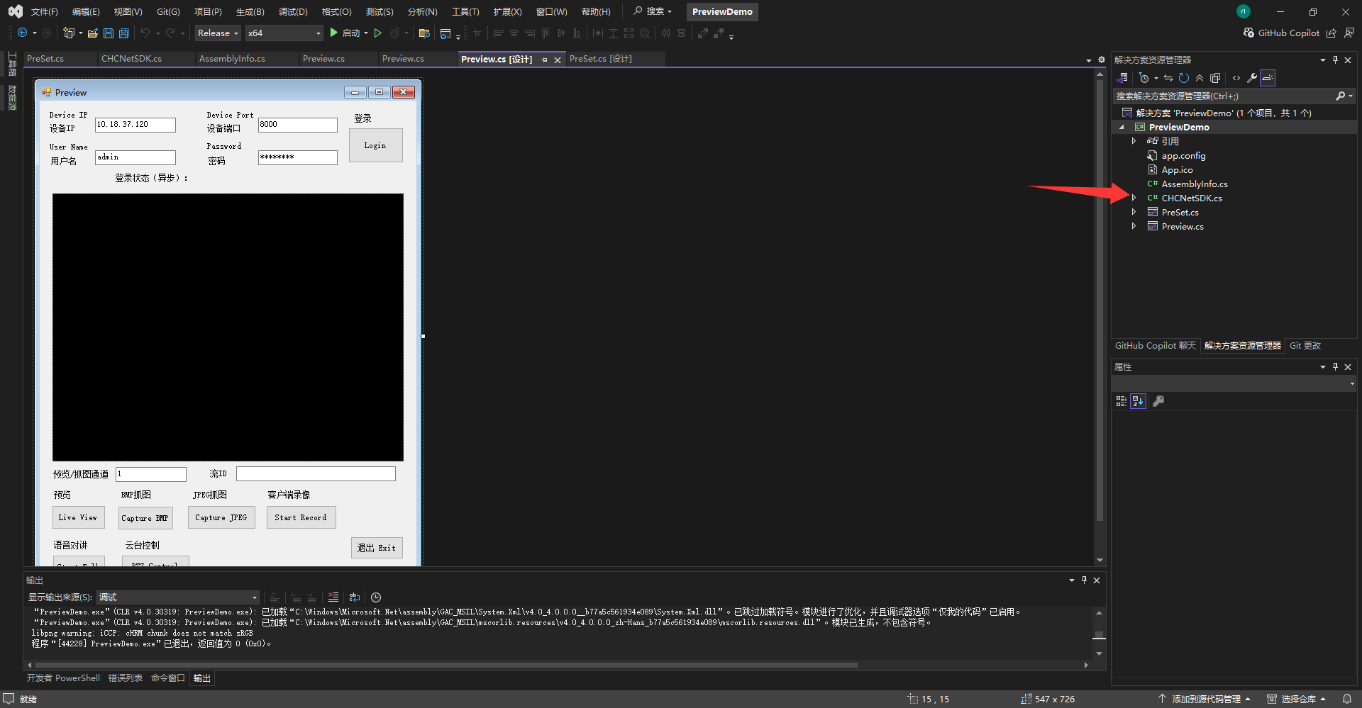 接下来只需要把CHCNetSDK.cs复制到自己的项目,进行开发一下(CV大法)就好了。